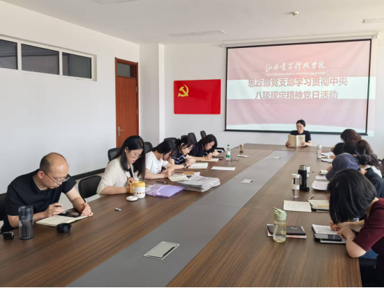 2025年5月14日,思政部党支部组织开展了“以学促行,以行促效——思政部党支部学习贯彻中央八项规定精神”主题党日活动。本次活动旨在通过集中学习、讨论、问题查摆和整改措施制定,引导党员深刻领会中央八项规定精神的实质,切实加强作风建设,推动思政部各项工作高效开展。活动形式多样、内容丰富,取得了显著成效。