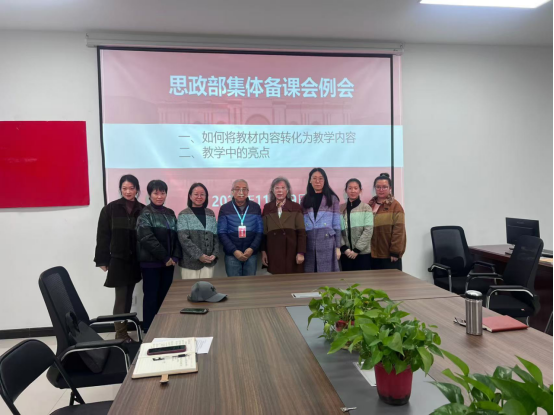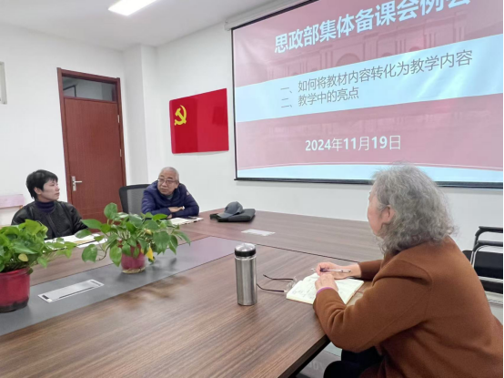 思政部于11月19日在15A-501召开了一场主题鲜明的集体备课会。会议的核心议题是如何将教材体系有效转化为教学体系,并在教学过程中突出亮点,以提升思政课的教学质量和学生的学习兴趣。来自不同学科背景的思政课教师齐聚一堂,共同探讨和分享了各自的教学经验和创新思路。会议由赵丽华教授主持,教学督导组成员闫献国教授参加此次会议。